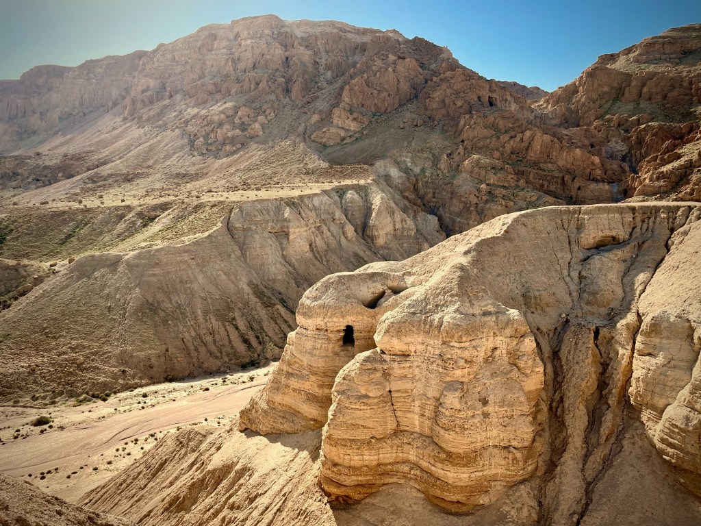 My husband and I visited Qumran a few years ago in modern-day Israel and were fascinated by the story of the scrolls. We also visited the exhibit where they’re held in the Shrine of the Book at the Israel Museum in Jerusalem. It was awe-inspiring to observe some of the scroll fragments and even a pair of sandals more than 2,000 years old.